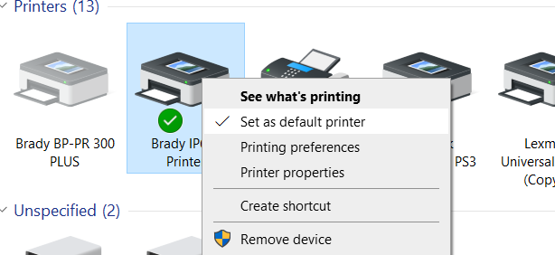 What Does The Green Check Mark On My Printer Mean In Devices And Printers Brady Support
